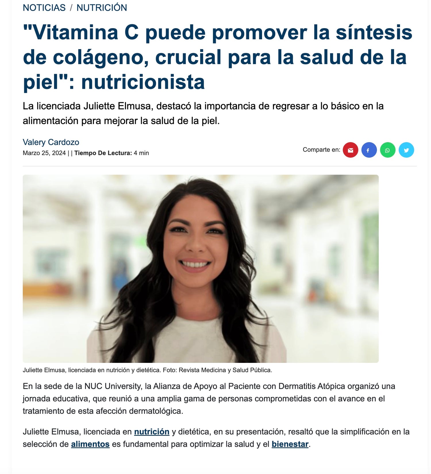 Juliette Elmusa Rivera, es Licenciada en nutrición y dietética con un enfoque holístico y empático. Egresada de la Universidad Ana G. Méndez de Gurabo, PR. Trabaja enfocada en la comunidad y necesidades individuales adaptadas a la cultura. Ofrece servicios de nutrición de forma educativa, consultas y planes de alimentación atendiendo la necesidad de optimizar estilos de vida sanos para la población pediátrica, adultos, y adultos mayores.